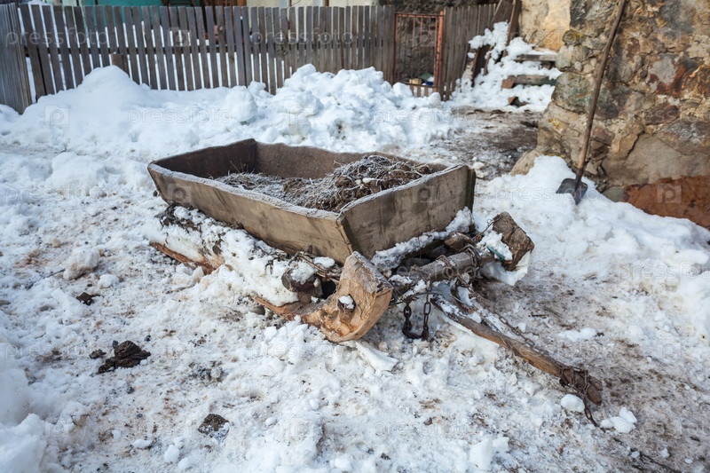Сани для сена в снегу, Сванетия, Грузия