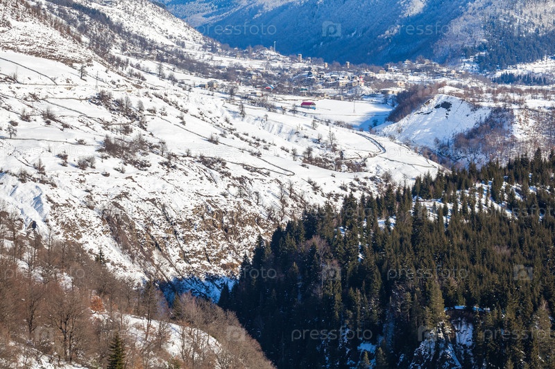 Горная деревня в горах Кавказа в зимнее время, Сванетия, Грузия