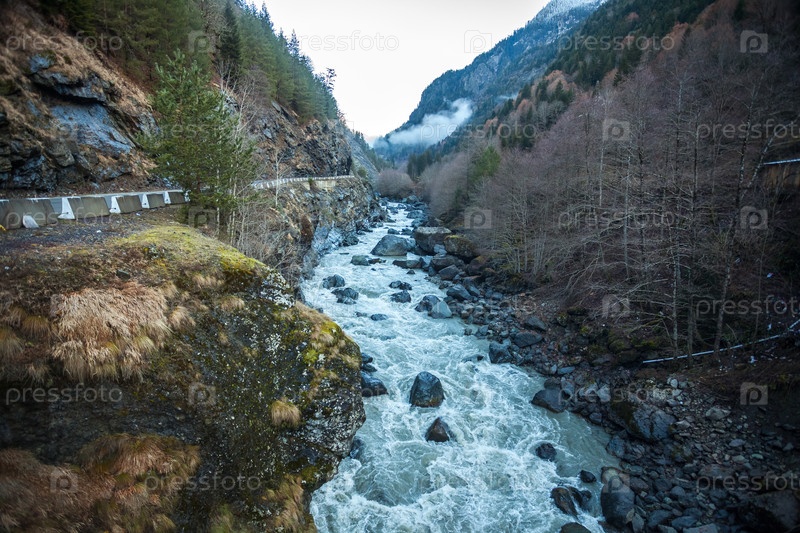 Долина реки Ингури по дороге в Местиа, Сванетия, Грузия