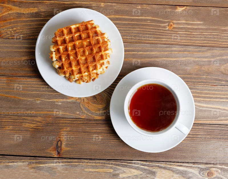 Чашка чая и стопка вафель