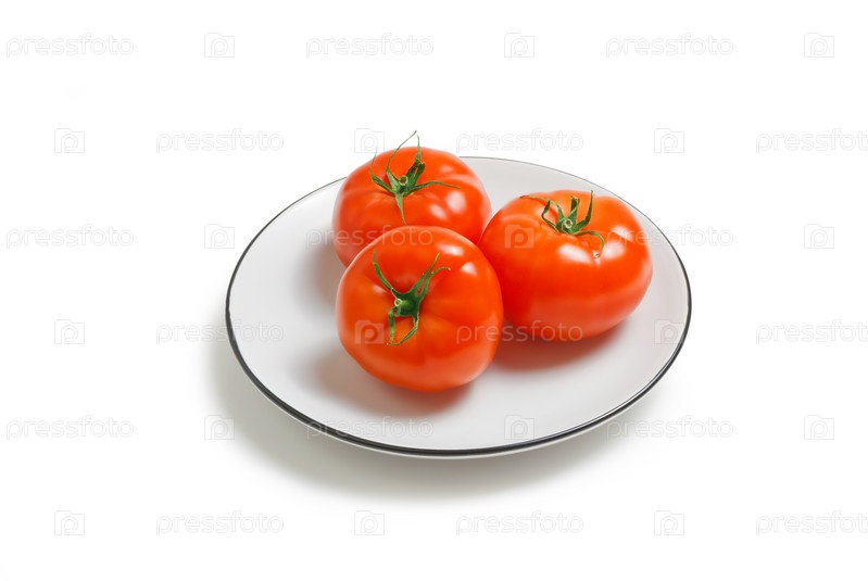Три свежих красных спелых помидора