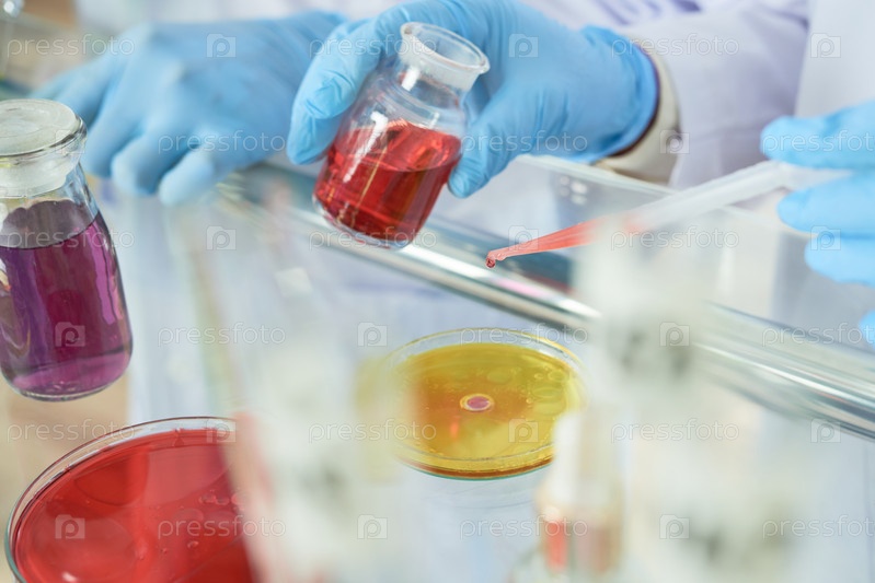 Смешивание жидкостей в чашке Петри