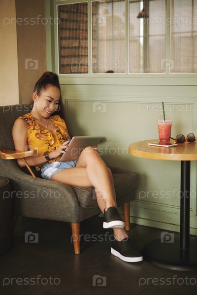 Молодая женщина с цифровым планшетом