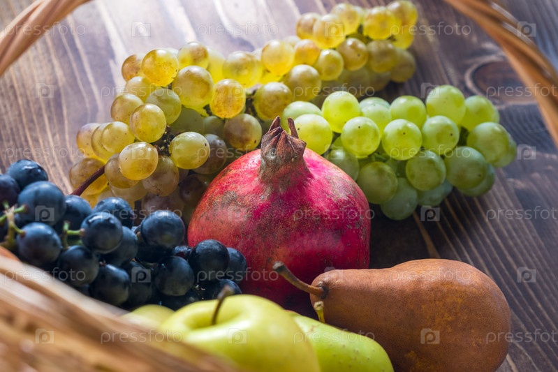 Ассорти фруктов в плетеной корзине