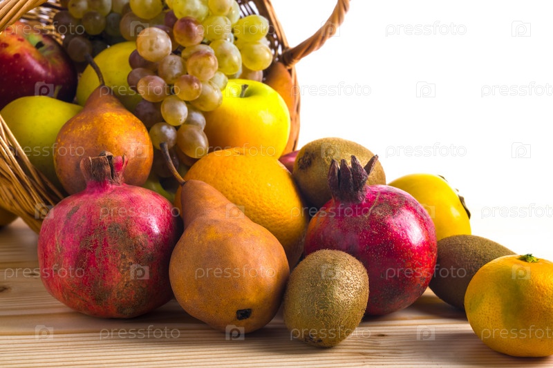 Ассорти фруктов в плетеной корзине