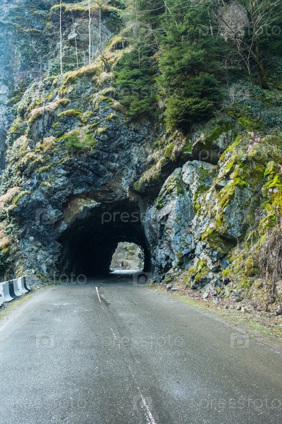 Туннель в скале на дороге в Сванетию, Грузия