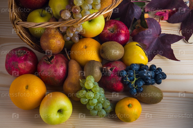 Ассорти фруктов в плетеной корзине
