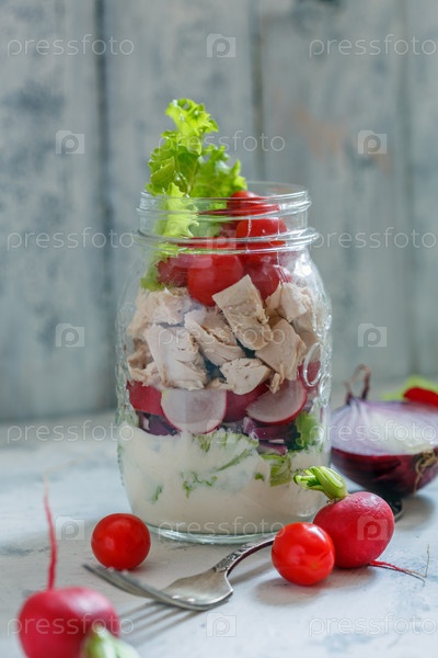 Домашний салат с курицей и овощами