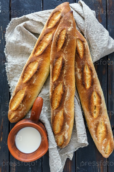 Мастерские хлебные багетты и кружка молока