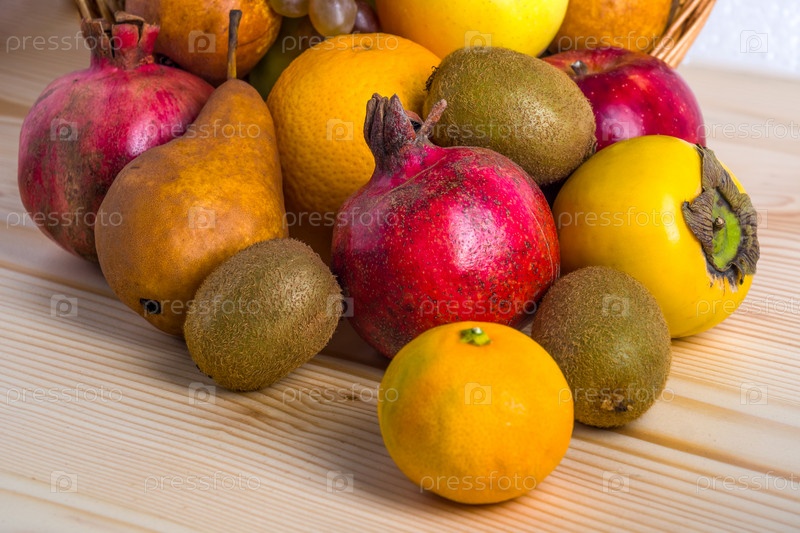 Ассорти фруктов в плетеной корзине