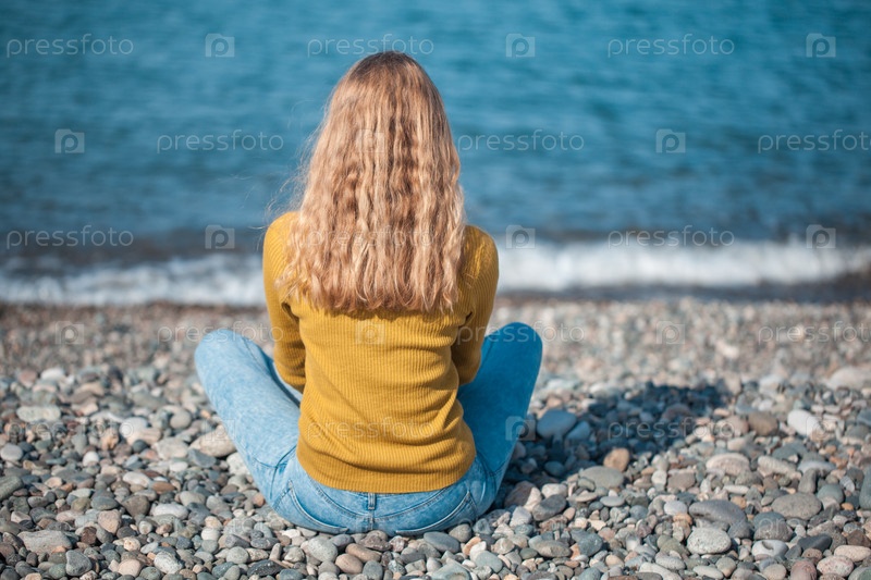 Красивая блондинка на пляже