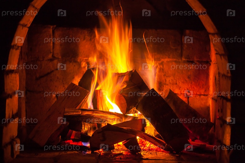 Огонь горит в камине