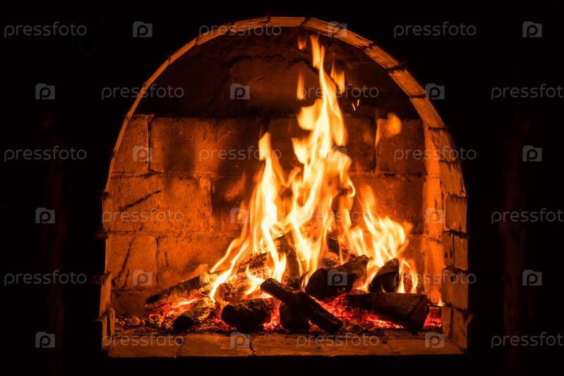 Огонь горит в камине