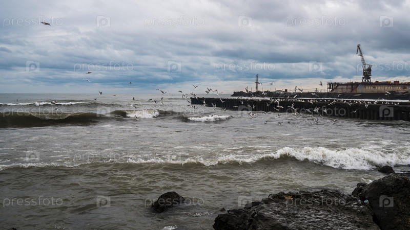 Чайки на берегу Черного моря, Поти, Грузия