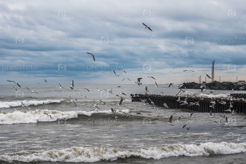 Чайки на берегу Черного моря, Поти, Грузия