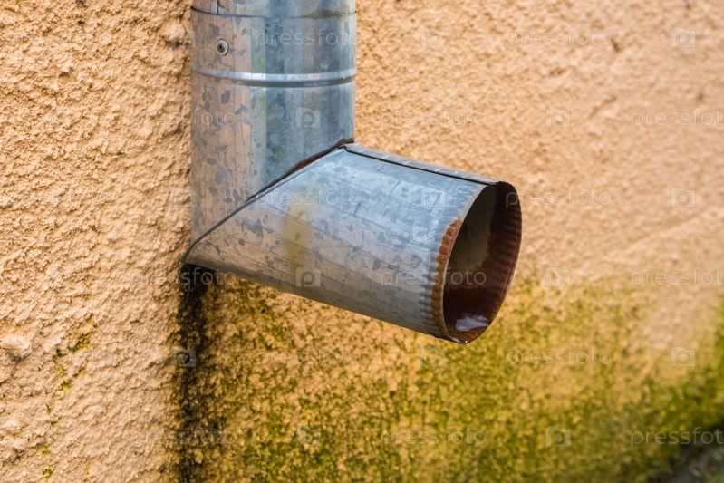 Старый металлический водосток на стене