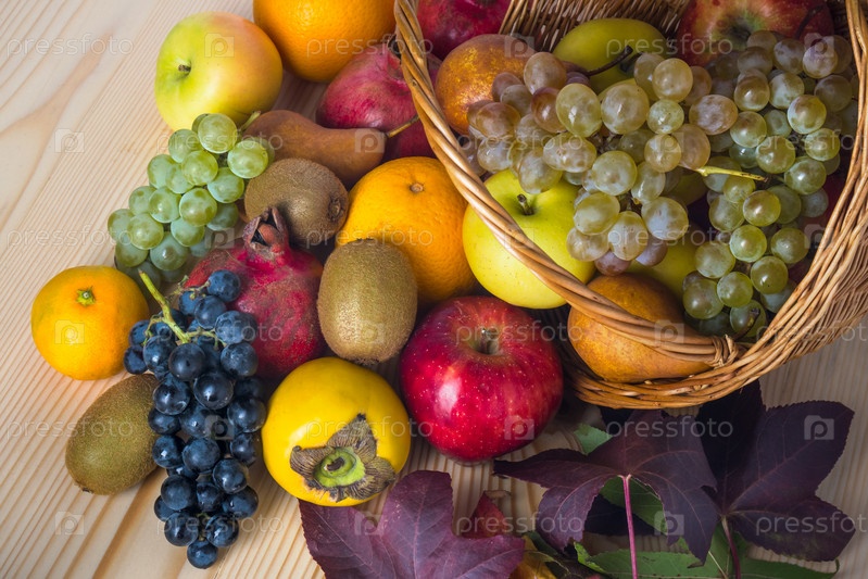 Ассорти фруктов в плетеной корзине