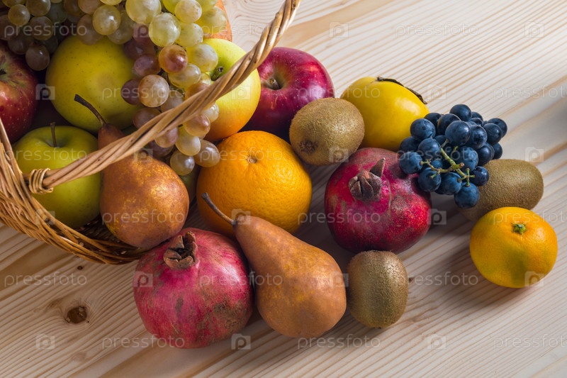 Ассорти фруктов в плетеной корзине