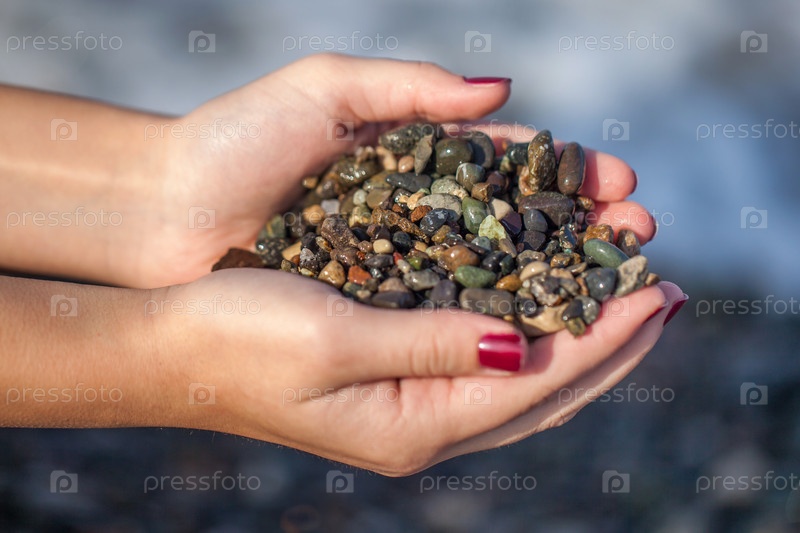 Женские руки держат красочный гравий