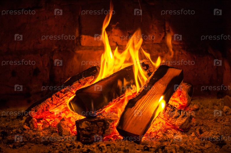 Огонь горит в камине