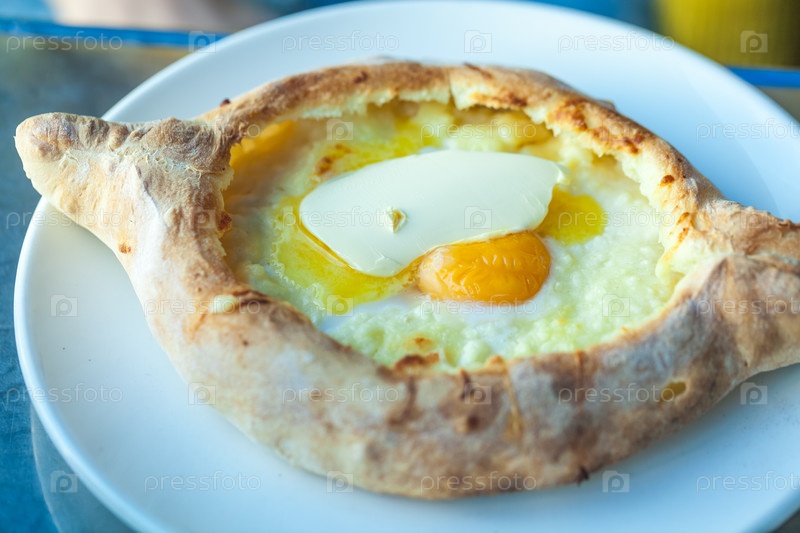 Аджарские хачапури с яйцами на столе