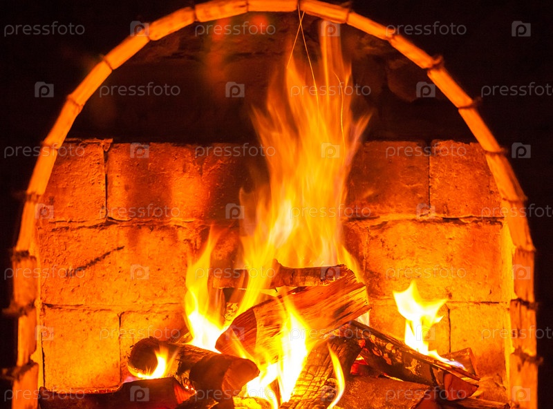 Огонь горит в камине