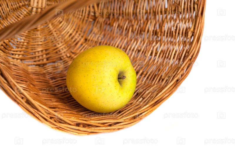 Яблоко в плетеной корзине на белом фоне