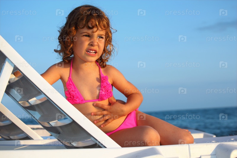 Девочка сидит в шезлонге на берегу моря