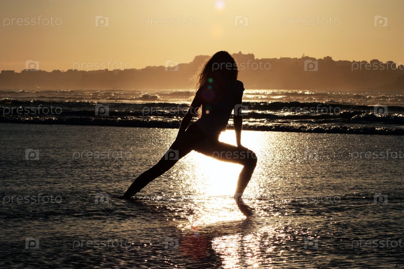 Силуэт девушки на фоне океана