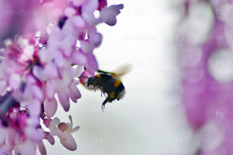 Шмель в полете у цветка
