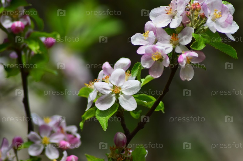 Розовые цветы яблони на ветке