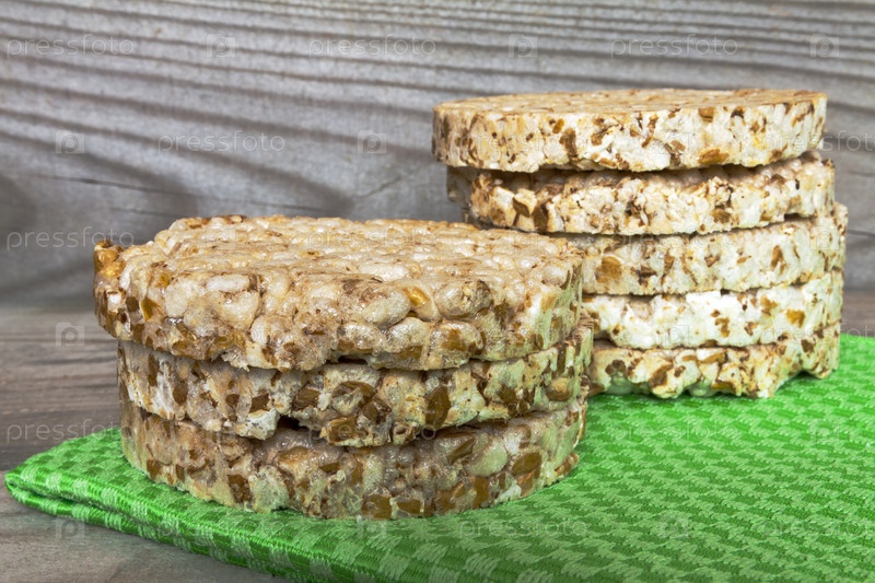 Стопка хлебцев на темном деревянном столе