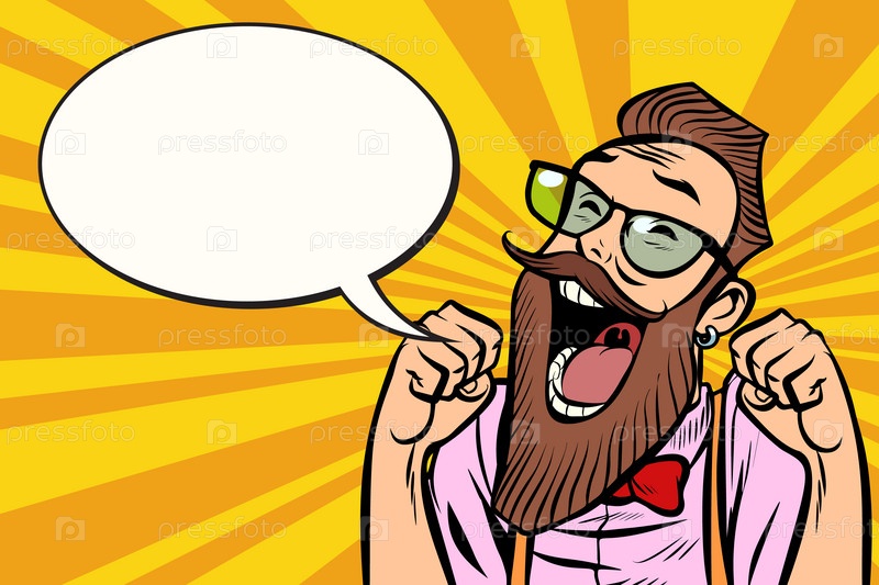 Стильный бородатый хипстер с очками весело