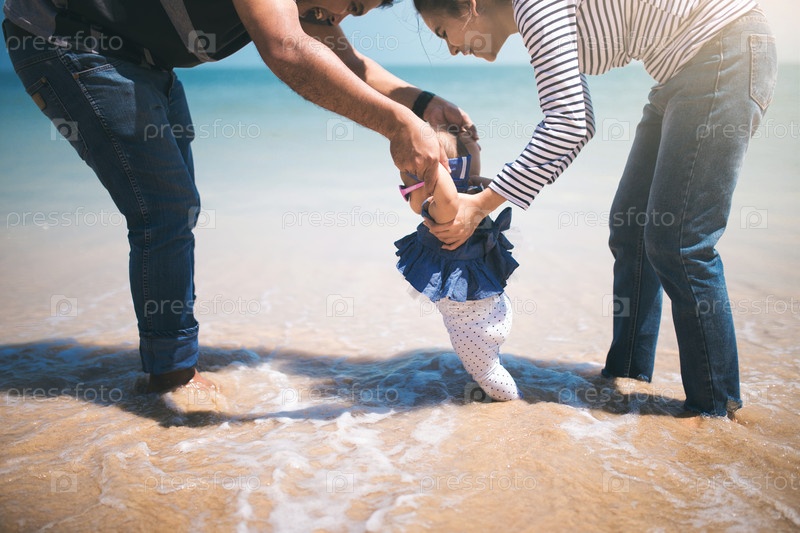 Родители играют с дочерью в море