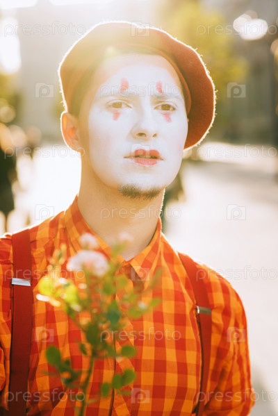 Мим на улице в ожидании встречи