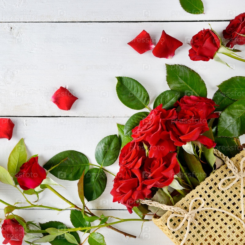 Красные розы на белом фоне