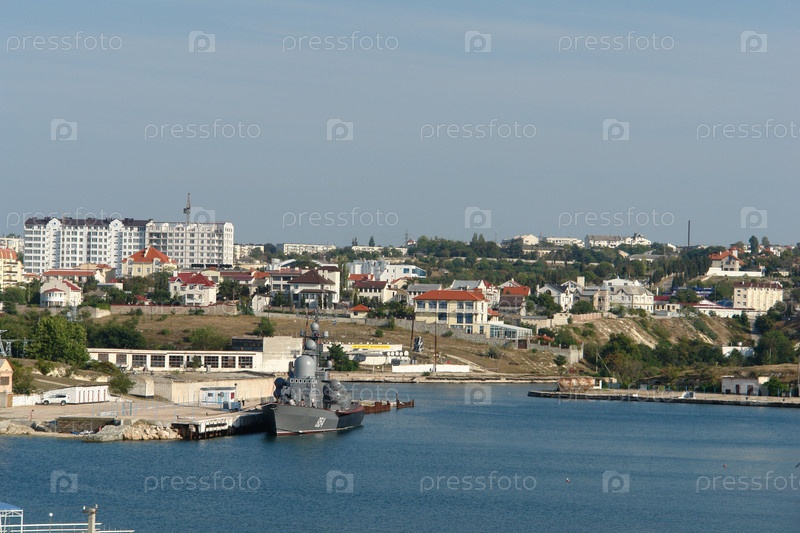 Боевой корабль на причале в Севастополе, Крым