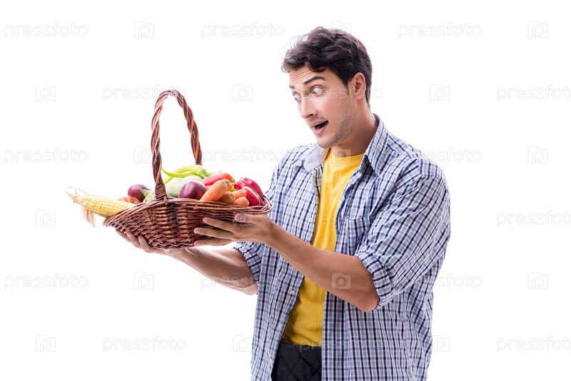 Человек с корзиной фруктов и овощей