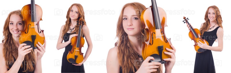 Женщина с скрипкой изолирована на белом