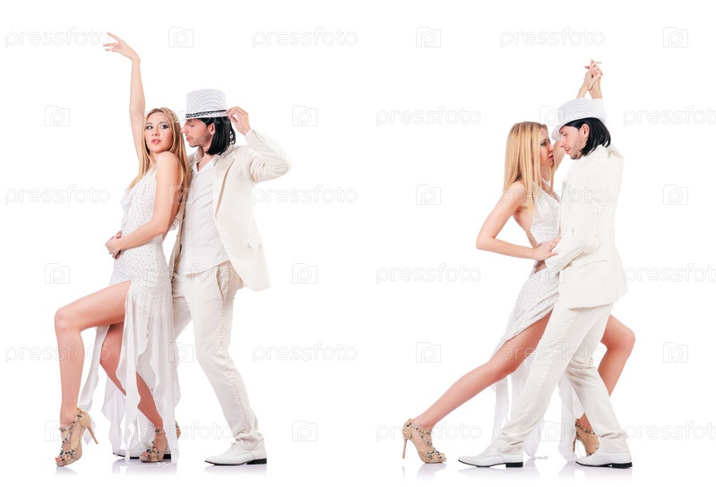 Танцующая пара танцует изолированно на белом
