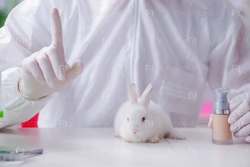 Ученый, проводящий эксперименты на животных в лаборатории с кроликом