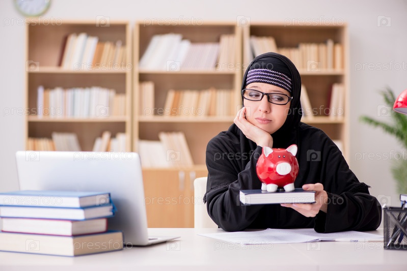 Мусульманская девушка в хиджабе учится готовиться к экзаменам