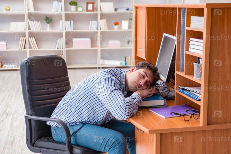 Молодой студент за компьютерным столом