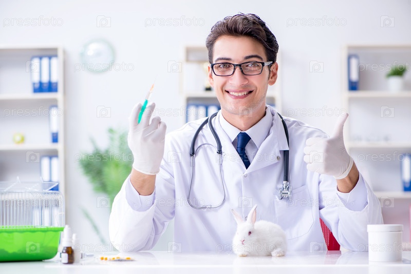 Ветеринар осматривает кролика в больнице