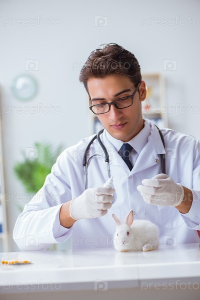 Ветеринар осматривает кролика в больнице