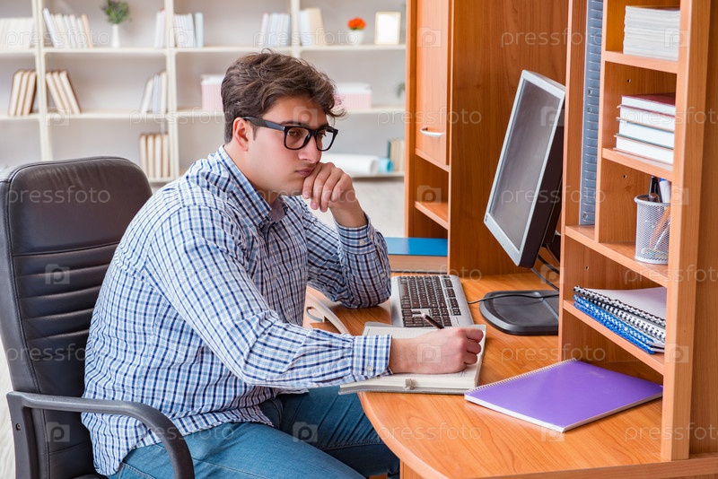 Молодой студент за компьютерным столом