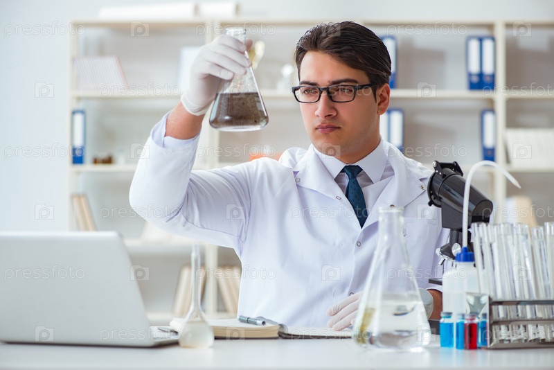 Молодой ученый-исследователь проводит эксперимент по тестированию загрязнения воды