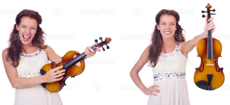 Женщина, играющая на скрипке изолирована на белом фоне