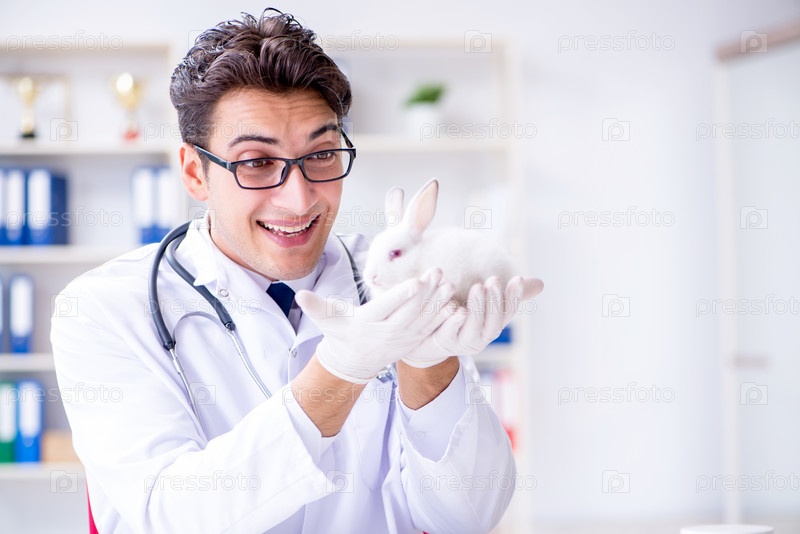 Ветеринар осматривает кролика в больнице