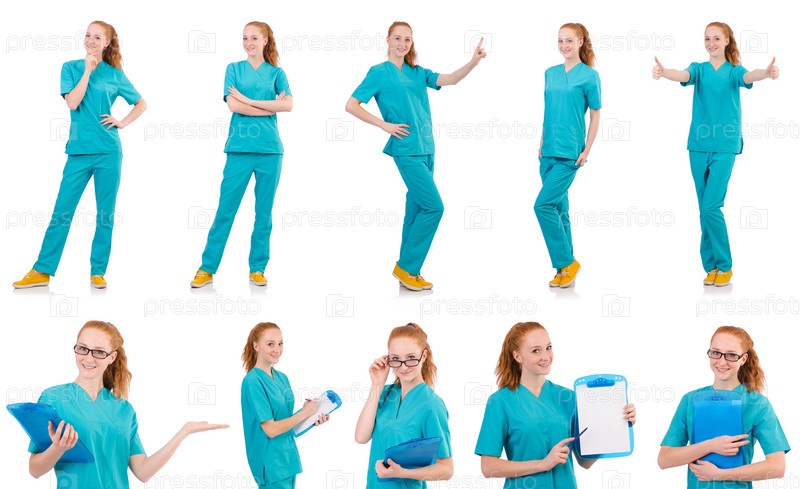 Улыбающаяся женщина-врач в форме, изолированная на белом